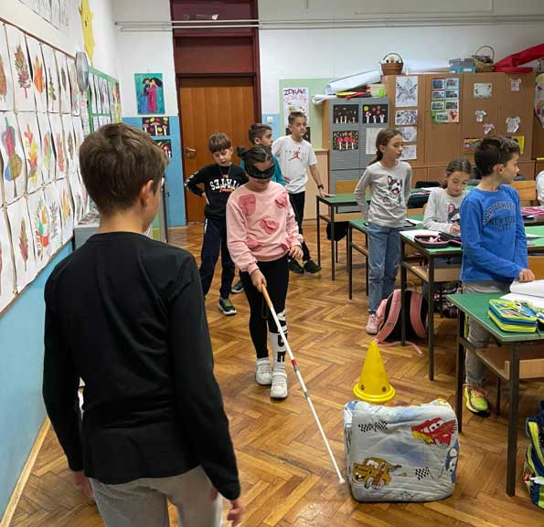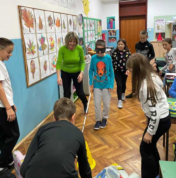 Zahvaljujemo se učiteljicama na pozivu i pruženoj prilici da učenike upoznamo sa problemima i mogućnostima kroz koje slijepa osoba prolazi svakodnevno.